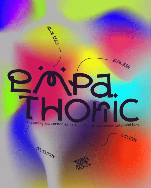 Empathonic brings together various collectives and creative minds to create a collective of collectives. This endeavor is a joint effort led by soydivision , which has curated series like soy&synth and Jendela Sonorama and movingpoets e.V, known for organizing music series such as Der fliegende Teppich and Strings&StrangerThings. Additionally, it will feature curatorial input from Nico Daleman (The rest is Music) and the experimental musician Korhan Erel, who has previously music curatorial work in Sowieso NK.